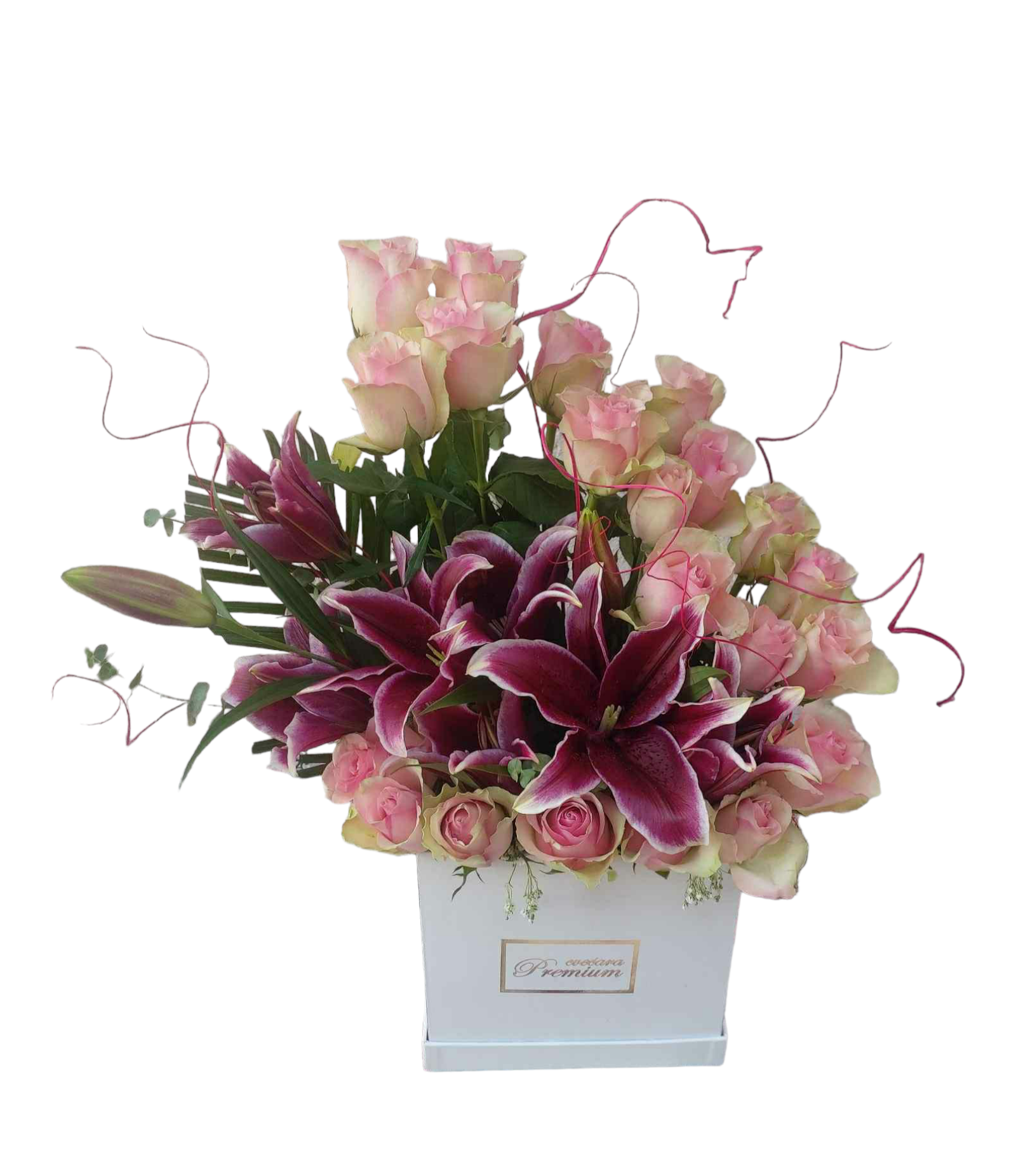 Mirisni ljiljan u kombinaciji sa roze ružama odaje utisak nežnosti i elegancije. Poručite ovaj čarobni aranžman i ulepšajte dan Vašoj dragoj osobi.